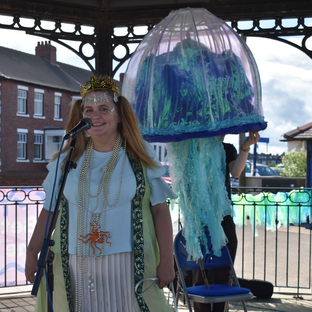 Over the Bank Holiday weekend, a crack squad of ten TWP performers had a blast playing Queen Jellyfish and her Rhyming Riddlers for Redcar’s brand-new family arts festival, Between the Tides. Here’s one account, from Patience Ezinwoke…